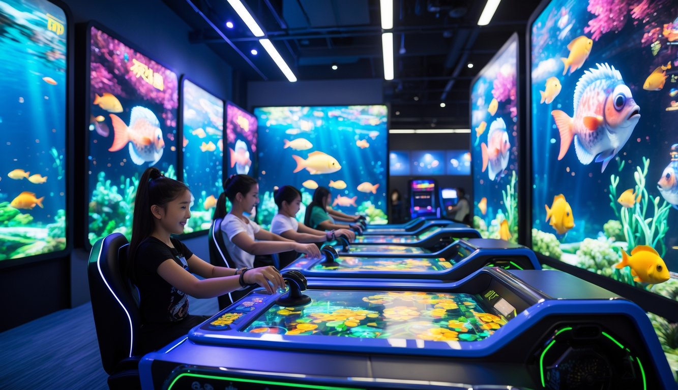 Melalui arena arcade interaktif, pemain dapat merasakan sensasi bermain di dunia virtual yang penuh warna dan efek menarik. Mereka bisa menembak ikan dengan tujuan mendapatkan poin dan hadiah, membuat permainan ini jadi hiburan yang menyenangkan.